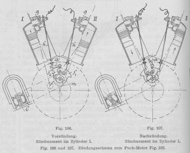 Fig. 106 und 107. Zündungsschema zum Puch-Motor Fig. 103Fig. 106.
