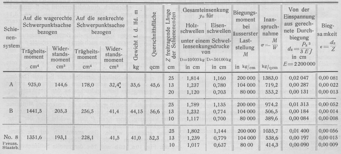 Laschendruck etwas geringer wird als beim Oberbau No. 6d und No. 8a der preussischen