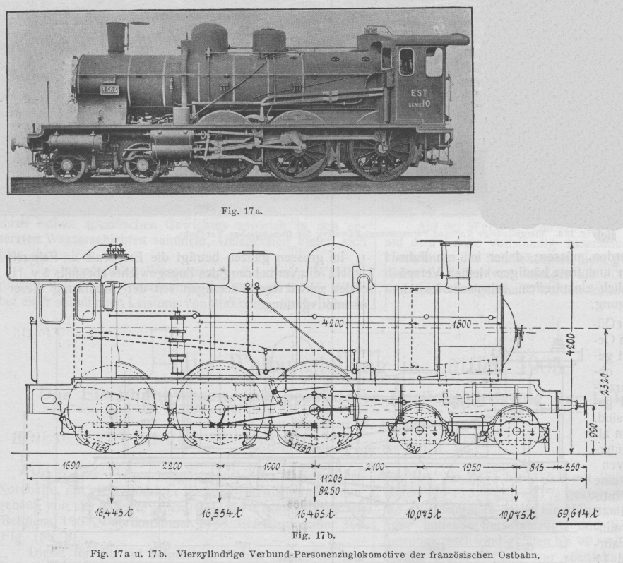 Fig. 17a u. 17b. Vierzylindrige Verbund-Personenzuglokomotive der