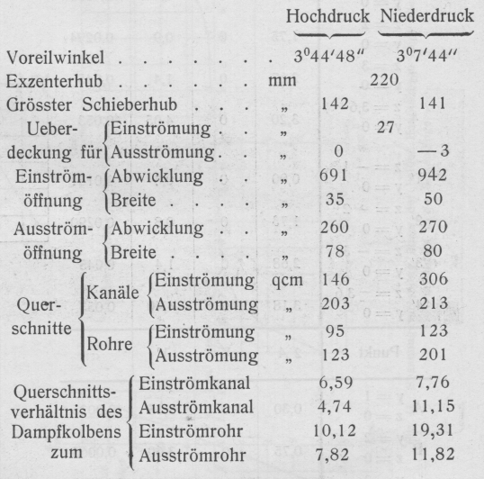 Hochdruck- und von 300 mm bei der Niederdruckmaschine. Die Dampfwege selbst haben