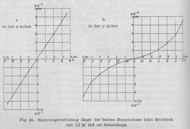 Fig. 40. Spannungsverteilung längs der beiden Hauptachsen beim Rechteck mit