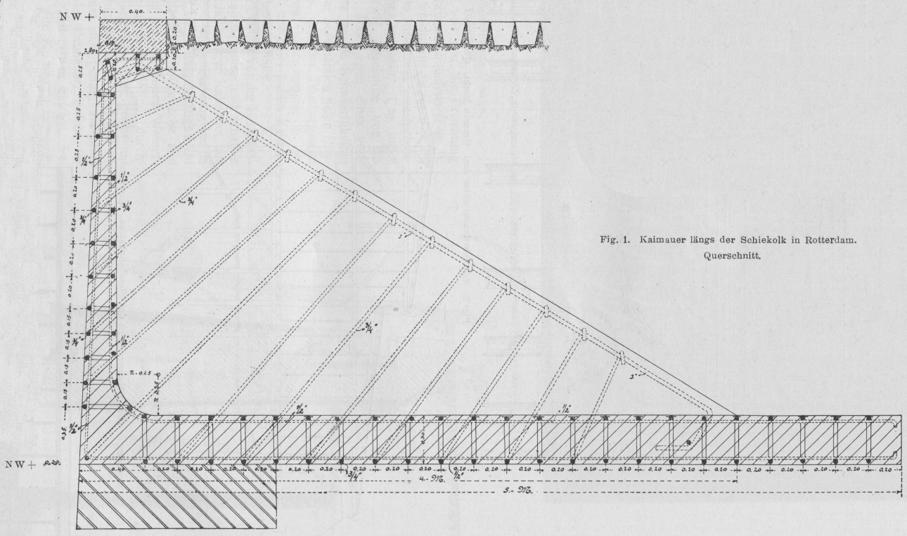 Fig. 1. Kaimauer längs der Schiekolk in Rotterdam Querschnitt.