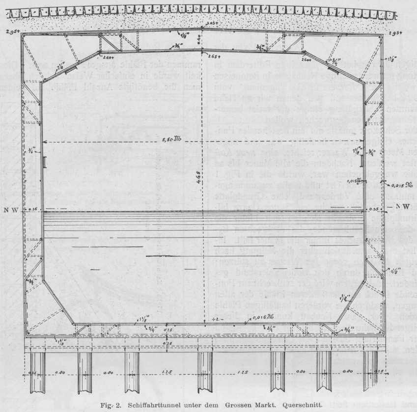 Fig. 2. Schiffahrttunnel unter dem Grossen Markt. Querschnitt.