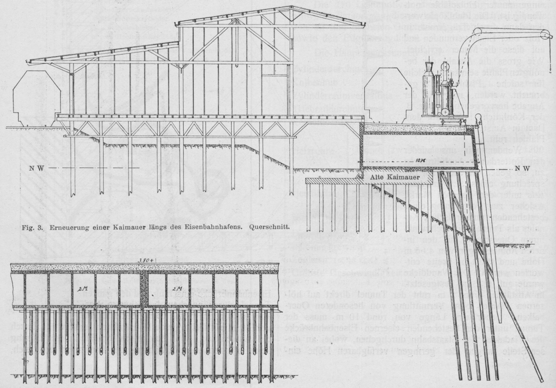 Eine andere interessante Arbeit war die Errichtung einer neuen Kaimauer längs des Eisenbahnhafens (Fig.