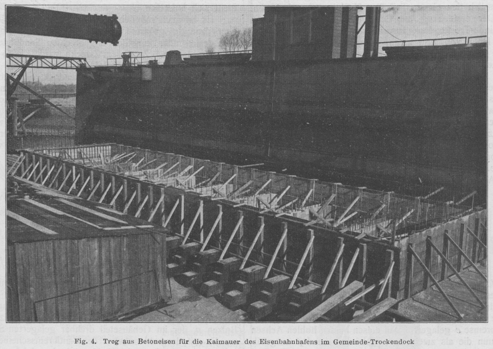 Fig. 4. Trog aus Betoneisen für die Kaimauer des Eisenbahnhafens im