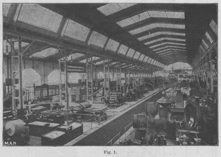 ausgestellten Wärmekraftmaschinen bemerken wir im Vordergrunde links zunächst die