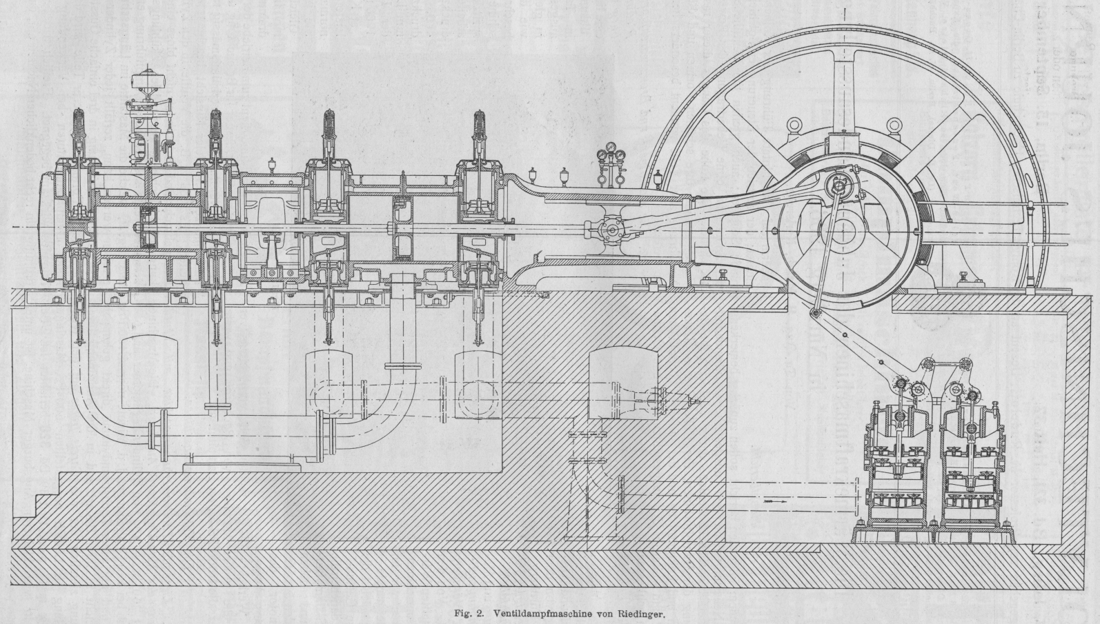 Fig. 2. Ventildampfmaschine von Riedinger.