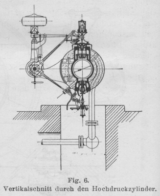 Heissdampf ausgebildeten Hochdruckzylinder darstellt, zu ersehen. Das obere Ende der