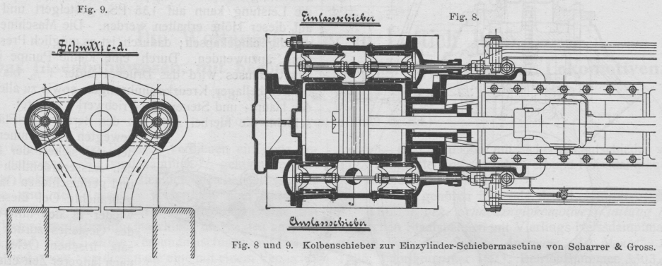 Fig. 8 und 9. Kolbenschieber zur Einzylinder-Schiebermaschine von Scharrer
