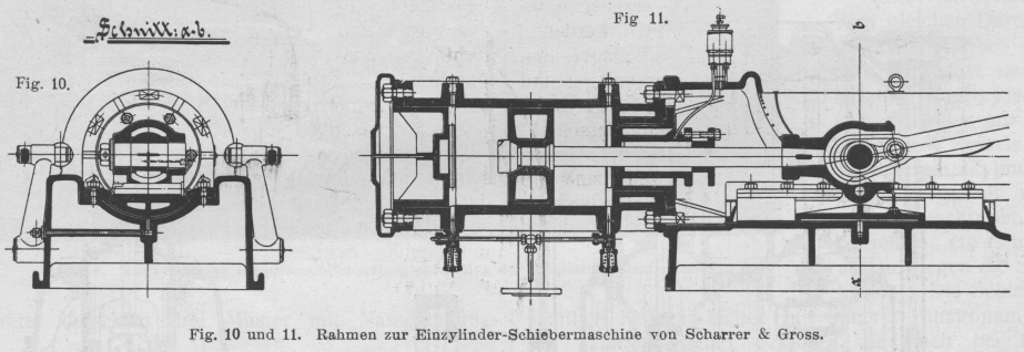 Fig. 10 und 11. Rahmen zur Einzylinder-Schiebermaschine von Scharrer &