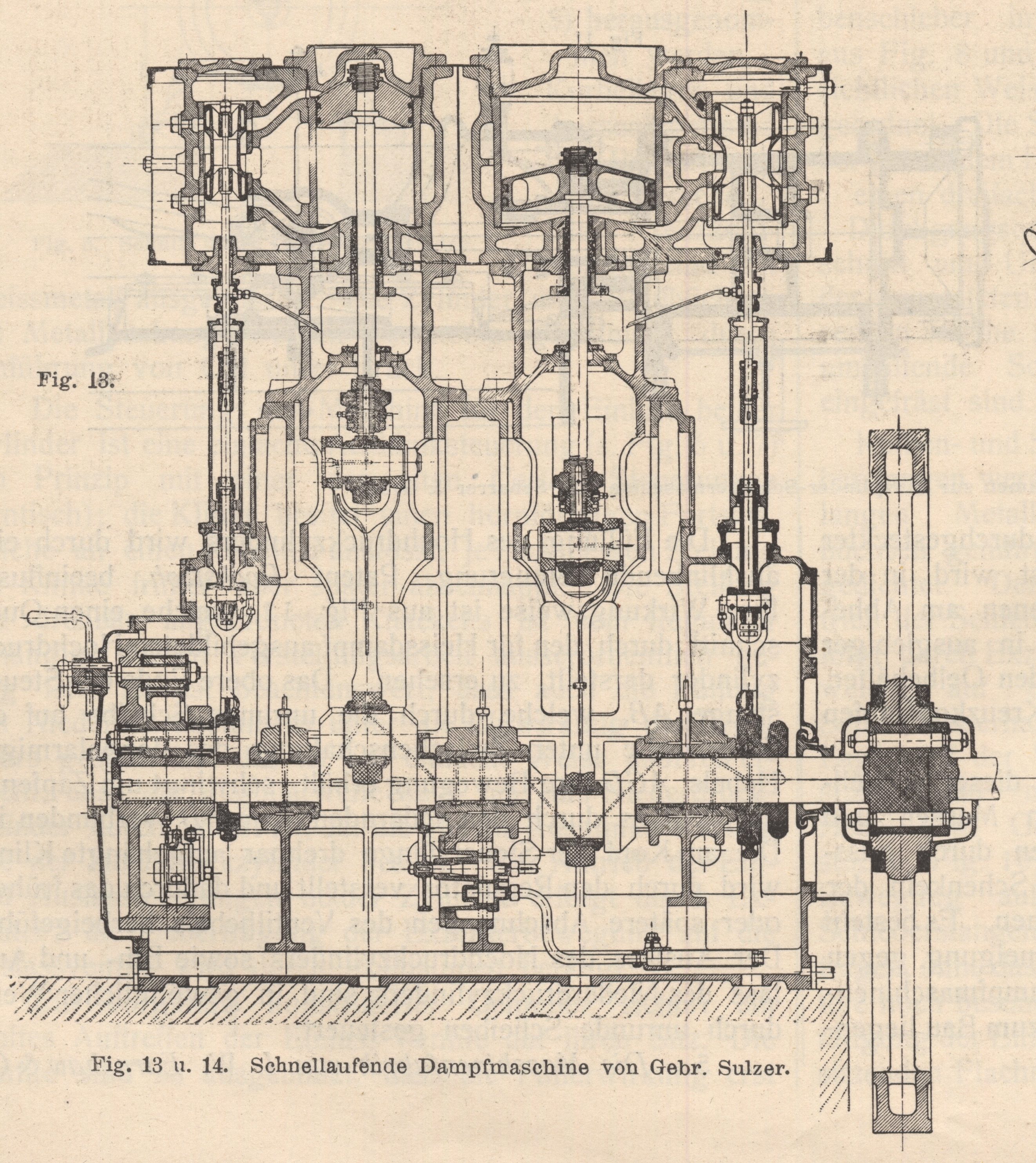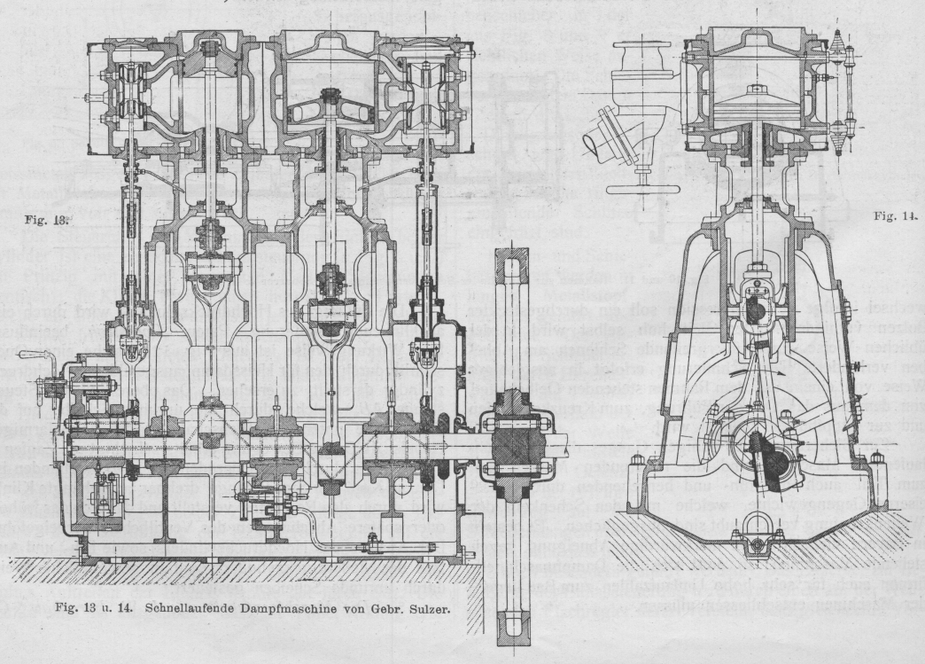 Fig. 13 u. 14. Schnelläufende Dampfmaschine von Gebr. Sulzer.