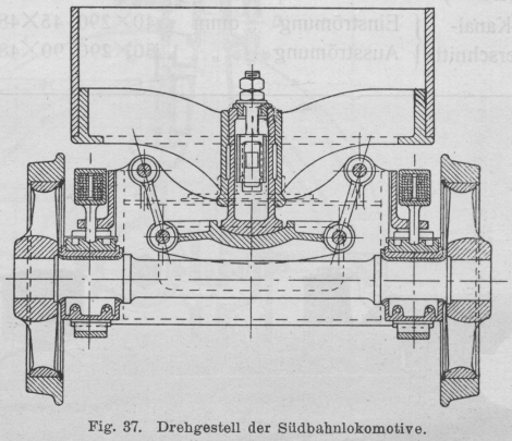 Triebachse gelagerten Deichsel das gewöhnliche amerikanische Bissel-Gestell („pony truck“); die Seitenverschiebung ist