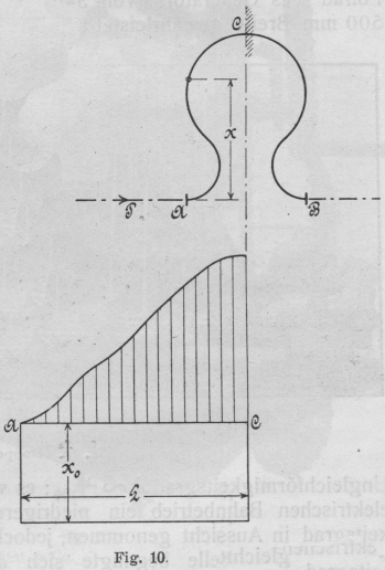 Trägt man (Fig. 10) die abgewickelte Länge L der Schleife als Gerade und dazu die Abstände x einer Anzahl Punkte als Ordinaten auf, so ist das