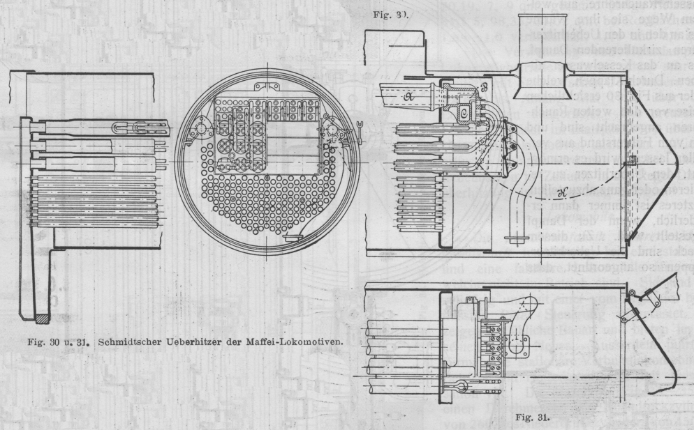 Fig. 30 u. 31. Schmidtscher Ueberhitzer der Maffei-Lokomotiven.