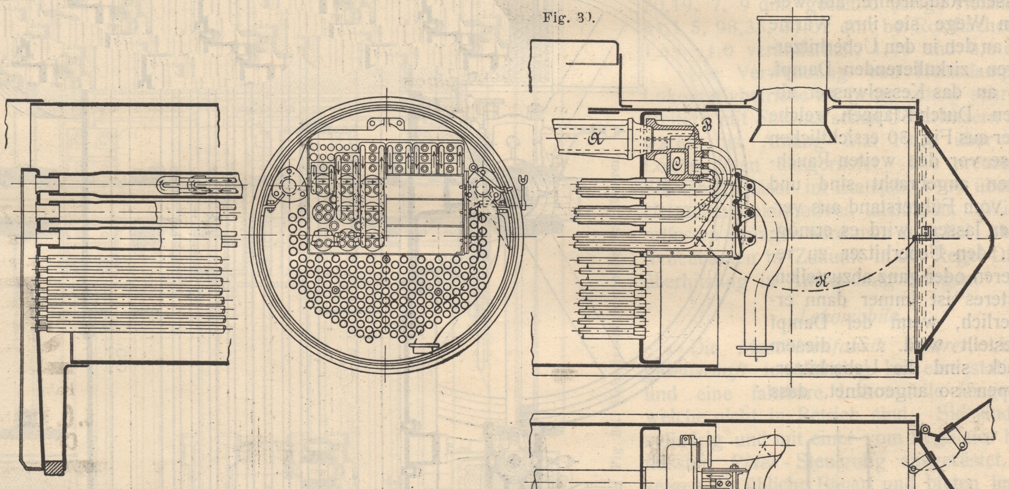 umspült wird und teilweise in die Heizrohre hineinragt. Die Fig. 30 u. 31. geben