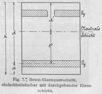 Fig. 7.Beton-Eisenquerschnitt, einfachheitshalber mit durchgehender
