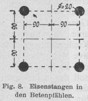 Fig. 8.Eisenstangen in den Betenpfählen.