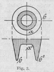 Die Magnetitbogenlampe.D. p. J. 1904, Bd. 319, S. 542. Von Dipl.-Ing. Walter Eminger, Câmpina (Rumänien). Die Magnetitbogenlampe. Die Bogenlampenelektroden lassen sich in zwei große Hauptgruppen einteilen, in gewöhnliche Bogenlampenkohlen und in Flammenbogenelektroden, letztere wieder in Kohlenelektroden mit Leuchtzusätzen und in Elektroden, die entweder nur sehr wenig oder gar keine Kohle oder diese nur chemisch gebunden enthalten. Chemisch gebunden findet sich die Kohle in den Elektroden aus den Metallkarbiden, gar keine Kohle ist enthalten in den Elektrolytelektroden von RaschD. p. J. 1902, Bd. 317, S. 703. und in den in den letzten Jahren in Amerika aufgetauchten Elektroden aus Metallegierungen, z.B. Ferrotitan, und aus Magnetit mit Titanoxyd. Bei den gewöhnlichen Bogenlichtkohlen wird, abgesehen von den Dauerbrandlampen, das Licht fast ausschließlich von dem glühenden Krater der positiven Kohle geliefert, und zwar zu etwa 85 v. H. Die negative Kohle liefert ungefähr 10 v. H. und der etwa 3 mm lange nur wenig leuchtende Bogen nur etwa 5 v. H. der gesamten Lichtmenge. Bei den Flammenbogenelektroden aus Kohle mit Leuchtzusätzen wird der 15 – 20 mm lange Lichtbogen durch die den Elektroden beigemengten Zusätze, z.B. Metallsalze, welche gutleitende Dämpfe bilden, leuchtend gemacht, indem die in den Bogen gelangten Teilchen dieser Zusätze denselben färben. Durch diese Zusätze erreicht man eine grössere Lichtausbeute. Nach Untersuchungen von Prof. Dr. WeddingE. T. Z. 1902, S. 708. ist bei derartigen Flammenbogenkohlen der Lichtbogen mit etwa 25 v. H. an der Gesamtstrahlung beteiligt, so daß auf die glühenden Kohlenspitzen 75 v. H. entfallen. Die Elektrolytelektroden haben gar keinen Krater, wenn zwar auch die intensiv leuchtenden Elektrodenenden mitstrahlen. Die Magnetit- und die Ferrotitan-Elektroden schließlich sind reine Flammenbogenelektroden. Der von den glühenden Elektrodenenden ausgestrahlte Lichtbetrag ist ganz unbedeutend, das ganze Licht wird daher praktisch nur von dem leuchtenden Bogen geliefert. Bereits im Jahre 1885 wurde in Amerika von einem gewissen Lewis L. Jones in Brooklyn ein Patent auf eine Bogenlampenelektrode, bestehend aus den Oxyden des Eisens und aus Magnesiumoxyd, nachgesucht, das im Jahre 1892 auch erteilt wurde. (Amerik. Pat.-Schr. 484553.) Ueber die Ergebnisse mit diesen Elektroden ist indessen nichts in die Oeffentlichkeit gedrungen. Als Ausgangsmaterial verwendete der Erfinder rotes Eisenoxyd, Fe2O3. Eine Mischung von 10 v. H. dieses roten Eisenoxydes mit 90 v. H. Magnesiumoxyd sollte nach Angabe der Patentschrift gute Ergebnisse liefern. Beide Oxyde sind Nichtleiter. Um den Elektroden die genügende Leitfähigkeit zu geben, reduzierte der Erfinder, indem er die fertigen Elektrodenstifte in Kohle einpackte und einer hohen Temperatur aussetzte, das nichtleitende Fe2O3 zu Magnetit, Fe3O4, oder er führte die Reduktion an der Oberfläche des Stabes bis zum Metall durch. Diese Elektrode dürfte als Vorläuferin der heutigen Magnetitelektrode aufzufassen sein. Der erste größere Artikel über die Magnetitbogenlampe erschien von Steinmetz am 21. Mai 1904 in Electrical World. Die von ihm beschriebene Lampe der General Electric Comp. verwendet als positive Elektrode eine über der negativen Magnetitelektrode angeordnete Kupferelektrode, die nicht verzehrt wird. Nur die negative Magnetitelektrode nützt sich ab. Der Magnetit ist in ein dünnwandiges Eisenrohr gepreßt. Durch das Titan soll das etwas unruhige Licht des Magnetit beruhigt und der Wirkungsgrad der Lampe erhöht werden. Bei einem für Kohlenelektroden üblichen Querschnitt beträgt der stündliche Abbrand etwa 3 mm, was bei einer Stiftlänge von 200 mm einer Brenndauer von 50–60 Brennstunden entspricht. Zur Erhöhung der Brenndauer kann bei der Fabrikation der Elektroden ein Teil des Oxydes zum Metall reduziert werden. Bei schwacher Reduktion aber fällt die Elektrode porös aus und besitzt dann eine geringere Lebensdauer, bei zu starker Reduktion aber geben die Elektroden ein unruhiges blaues Licht und sprühen Funken. Es wird daher statt der Reduktion zur Herabsetzung des Abbrandes besser ein inaktives Material als Zusatz gewählt. Derartige Elektroden brennen völlig ruhig und nützen sich innerhalb von 20–30 Stunden um nur etwa 25 mm ab, so daß eine 200 mm lange Elektrode für 150 bis 200 Brennstunden ausreicht. Es soll sogar möglich sein, die Brenndauer durch Aenderung der Zusammensetzung des Elektrodenmaterials unter Verringerung des Wirkungsgrades bis auf 500–600 Stunden zu steigern. Meßergebnisse teilt Steinmetz in diesem Aufsatz nicht mit. Vor etwa Jahresfrist, Mai 1905, erschien in der Zeitschrift Electrical World eine Veröffentlichung des Amerikaners Jsador Ladoff, in welcher er über Meßergebnisse mit Ferrotitan-Elektroden berichtet, wie sie die britische Patentschrift 226 vom Jahre 1904 von Ladoff & Mac Naughton beschreibt. In dieser Patentschrift schlagen die Erfinder für die darin beschriebenen Metallelektroden als Leuchtzusatz Titan, als leitende Substanz Eisen vor. Statt Eisen kann auch Kupfer oder ein anderes Metall, statt Titan auch ein anderer Leuchtstoff, z.B. Magnesium verwendet werden. Die Stifte werden bei Verwendung von Eisen entweder aus einer Ferrotitanlegierung oder aus Rutil, TiO2 und Magnetit Fe3O4 durch Reduktion in Kohle hergestellt. Ladoff teilt in seinem Aufsatze Untersuchungsergebnisse mit Stiften verschiedener Zusammensetzung mit. Er benutzte zunächst Elektroden aus Magnetit, Hämatit und Titanoxyd und umgab die Elektroden wegen ihrer Zerbrechlichkeit mit Eisenhülsen. Wurden mehr als 10 v. H. Titanoxyd zugesetzt, so wurde der Lichtbogen äußerst unruhig. Die Lichtausbeute war größer, wenn nur Magnetit und Titanoxyd und kein Hämatit verwendet wurden. Wurden ferner Elektroden aus Magnetit und Titanoxyd reduziert, so nahm die Lichtausbeute zu. Die Reduktion gestattete außerdem größere Beimengungen an Titanoxyd, und der Lichtbogen