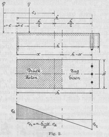 Nullinie verhalten und daß die Eiseneinlagen sämtliche Zugkräfte aufzunehmen