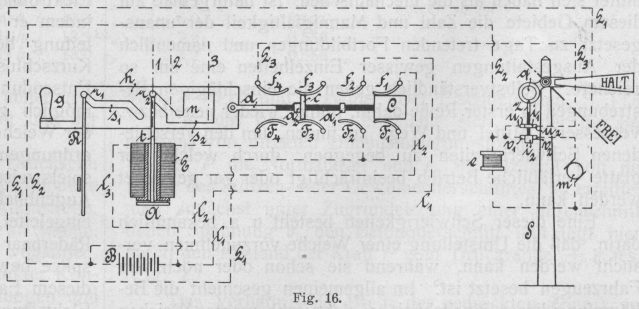 Stromschlußstück C wieder zwischen F1 und f1 gelangt; beim Signal