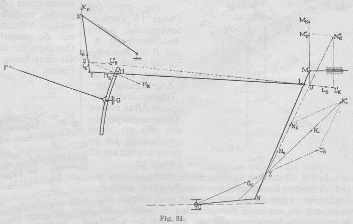 Fig. 31. Gegeben ist die Trägheitskraft K0 der Stange NO. Die Verteilung derselben auf die