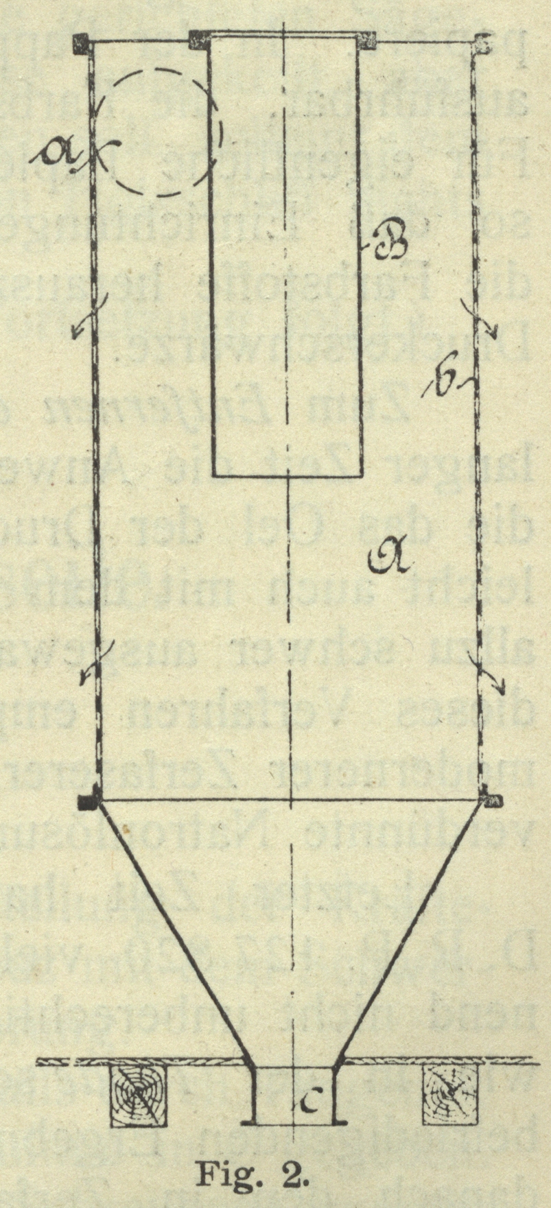 gelegten kleineren Zylinder B, wobei Staubteile gut