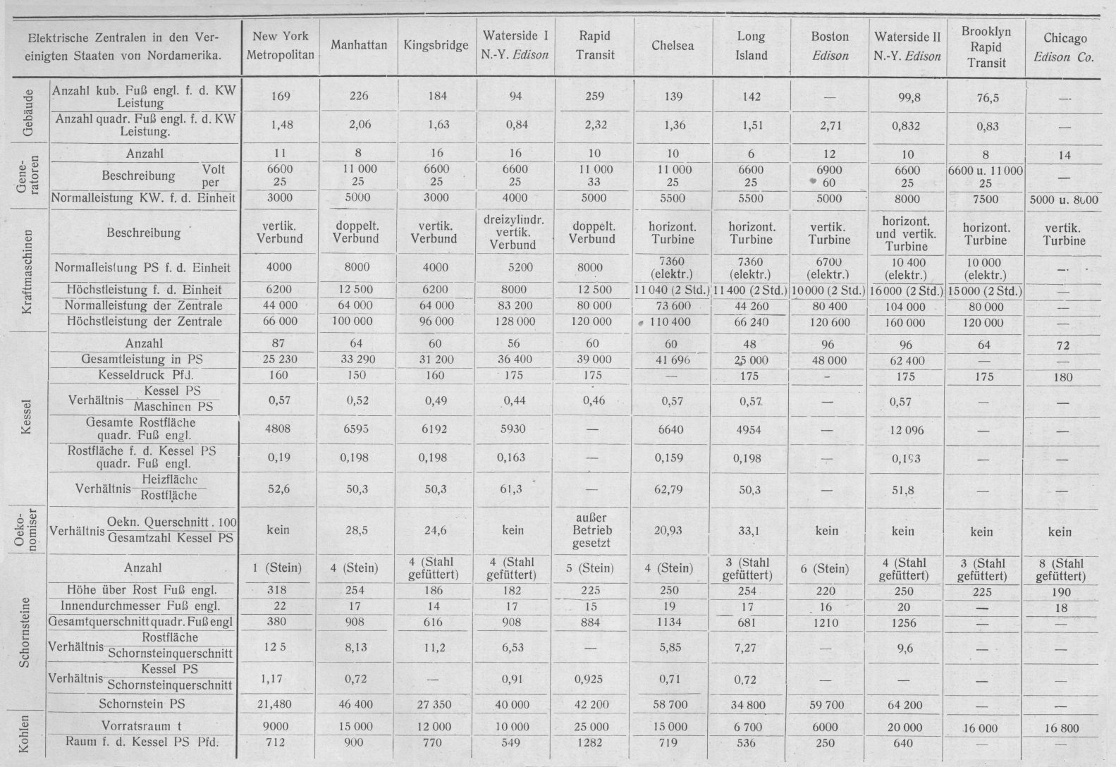Co; Gebäude; Generatoren; Kraftmaschinen; Kessel; Oekonomiser; Schornsteine;