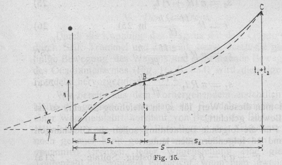 bezw. durch die geradlinige Bewegung des Wagens und schwingende Bewegung des