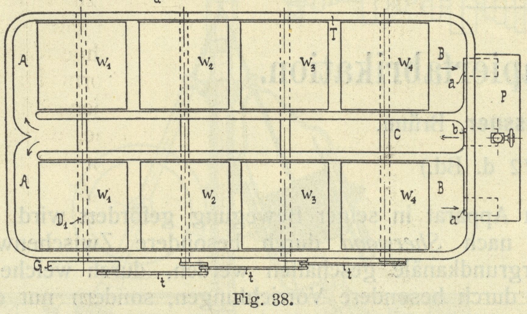 auf der Außenwand des Troges, andererseits auf kurzen inneren Wandstücken e. Eine andere Ringwand w