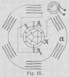 entstehenden Flächenfeldes eine Rotation des Ankers eintritt. Die Wirkung ist jedoch