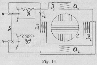 welches zwar vom Hauptstrom erregt wird, jedoch nicht in derselben Ebene wie das