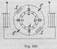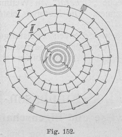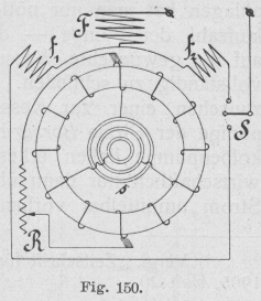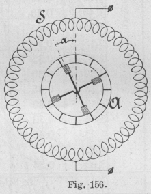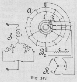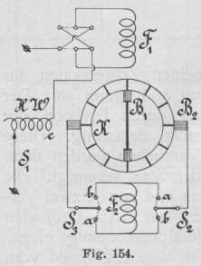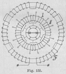 Zur Verringerung der Anzahl der Schleifringe auf drei wurde dann nach Fig. 153 eine Dreiphasenwicklung mit einer