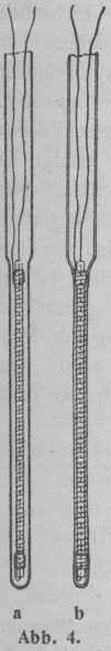 ein Platindraht eingeschmolzen. Werden beide Drähte mit Zwischenschaltung einer
