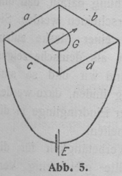 5). Vier Drähte von den Widerständen abcd sind in der angedeuteten Weise verbunden. Von den Verbindungsstellen
