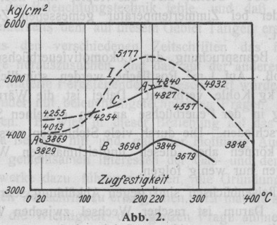 hervor, daß bei Zimmerwärme der Baustoff C die größte Festigkeit besitzt, aber die