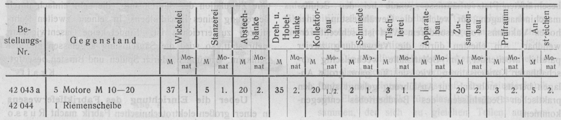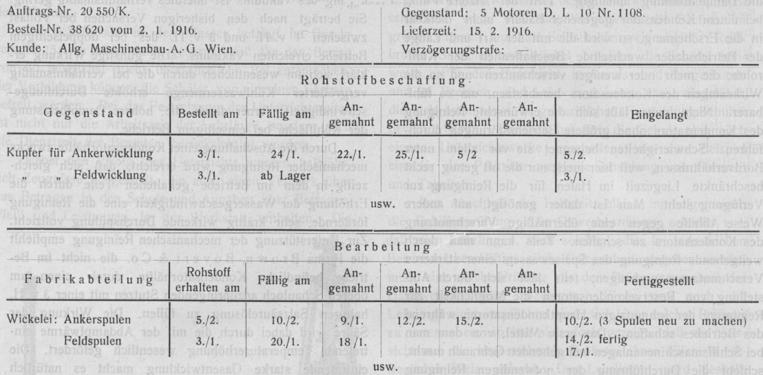 ausgefertigt werden, und der Beschäftigungsgrad der einzelnen Abteilungen daraus