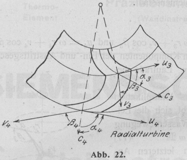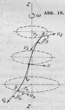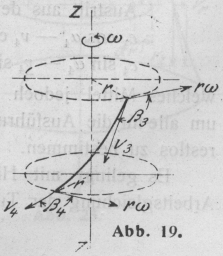 die Z-Achse rotierenden Kanals bedeuten, während r3, r4, v3, v4, ß3, ß4 aus der Abb. 18 zu