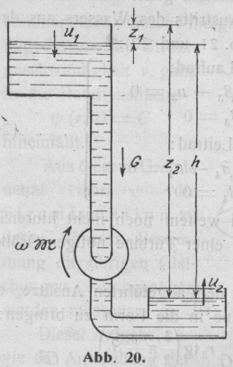 Wird in die Verbindungsleitung zwischen zwei Wasserbehältern F1 und F2 eine Turbine