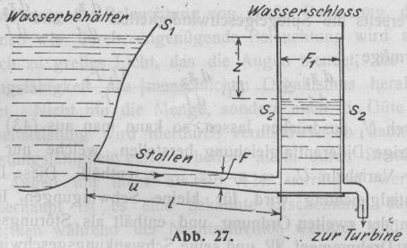 Nach der Abb. 27 fließt in der Zeit d t durch den Stollen die Wassermenge γ F U d t mit der Arbeitsleistung d A = γFUzdt.