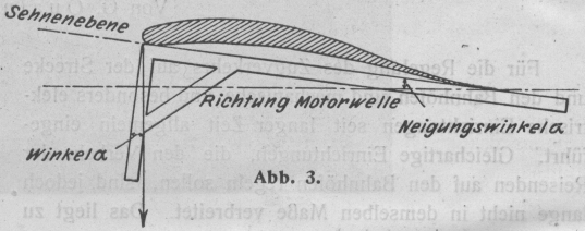 Luftstromes bzw. der Richtung der Motorenwelle bildet, an den Rumpf angebaut (Abb. 1). Die Größe dieses Anstellwinkels, der
