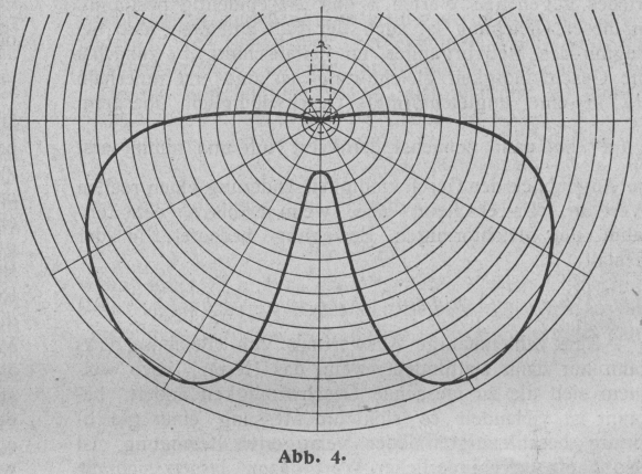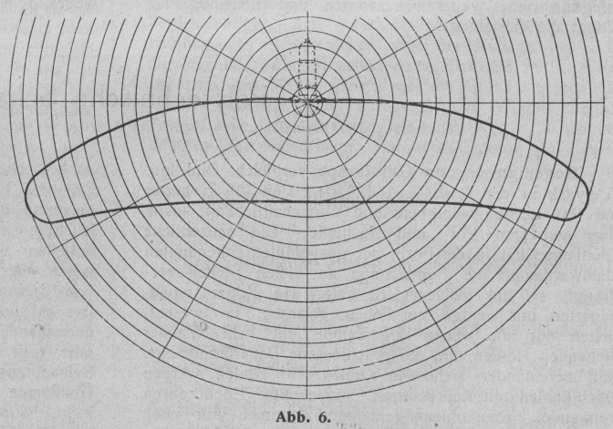 Lampen wird die an sich minder geeignete Lichtverteilung (Abb. 4) durch Einfügung einer Diopterglocke (Abb. 5) in eine passendere Form gebracht (Abb.