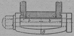 auf die Schweißstellen A, weil das Ende B der Bügel nachgiebig ist. Zweckmäßig wird das Gewinde