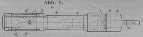 sitzt. Durch den an der Mutter g vorgesehenen Bund h und die Ueberwurfmutter i wird die Mutter g im Hauptkörper a drehbar, aber unverschiebbar gehalten.
