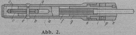 Stellbolzens b ist mit einem Gewinde f versehen, auf welchem eine im Hauptkörper a frei drehbare Mutter g