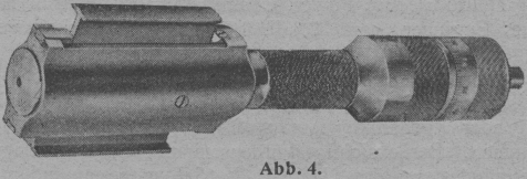 Stellbolzen b an seinem oberen Ende getragene Skala m, während die feine Einstellung der Tastkörper (auf