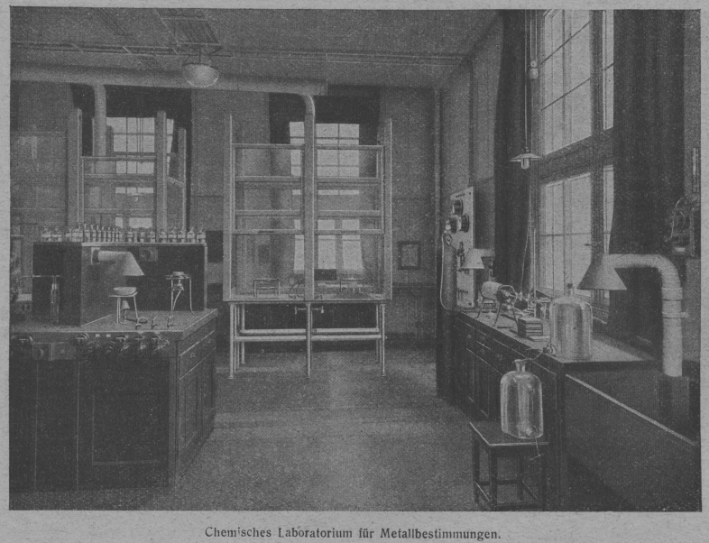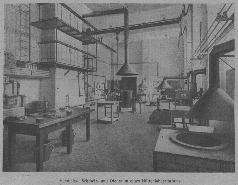 Versuchs-, Schmelz- und Ofenraum eines Hüttenlaboratoriums.