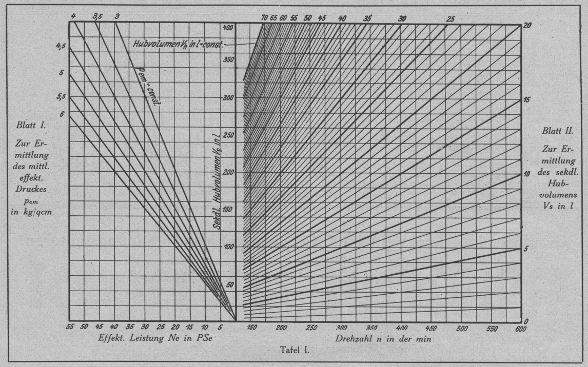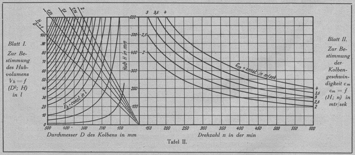Tafel II Blatt I ist auf Grund der Formel (4) aufgebaut. Das Hubvolumen in