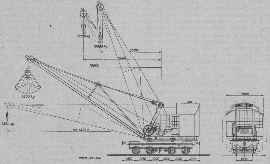 Dampfkranes, der bisher höchstens 6 t Tragkraft besaß, zu der in der Abbildung