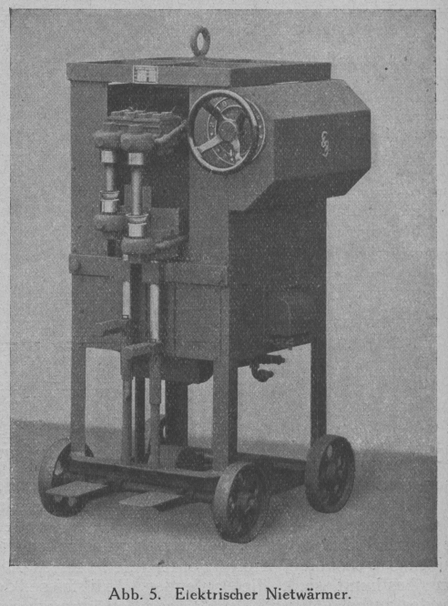 Wiederherrichtung der verbrauchten Stähle gestattet. Der Nietwärmer (Abb. 5) dient dazu, Niete durch, elektrischen