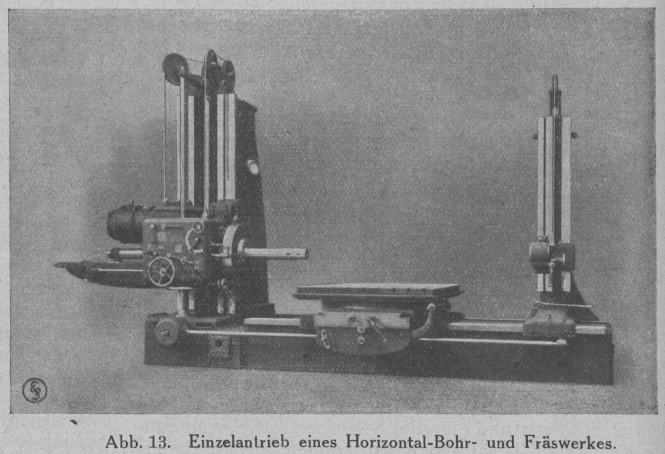 auf. Einen derartigen Antrieb zeigt das Horizontal-Bohr- und Fräswerk (Abb. 13), bei dem einGleichstrom-Flanschmotor mit